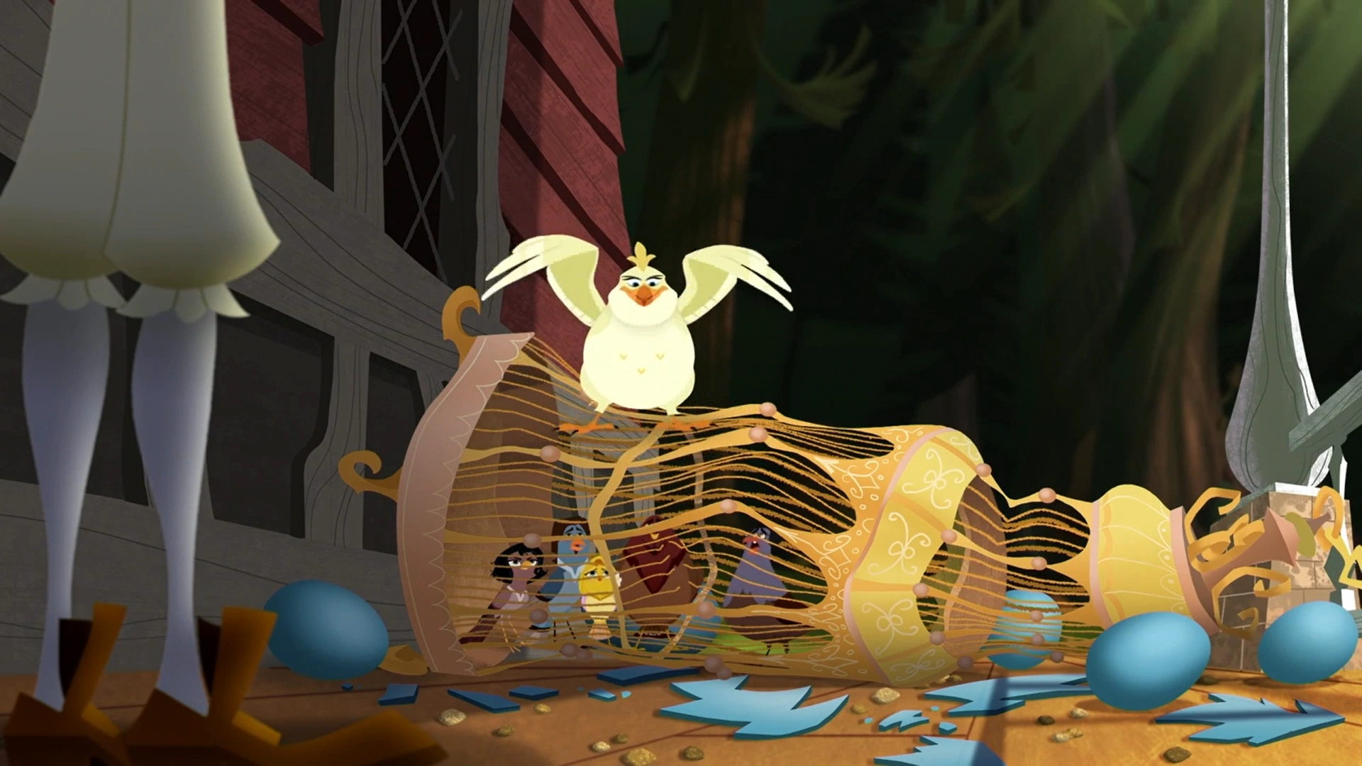 «Отец» относит подруг в золотую клетку для самых необычных птиц, в которой уже сидят превращённые в птах Юджин, Лэнс и Ногокрюк. Друзья решают выбрать из клетки и начинают раскачивать её, из-за чего она падает и разламывается. «Мать», дабы не дать дрзьям сбежать, выпивает весь волшебный чай и превращается в огромную птицу. Однако Кассандра успевает вылететь из разрушенной клетки и «Мать» вынуждена отправиться за ней.