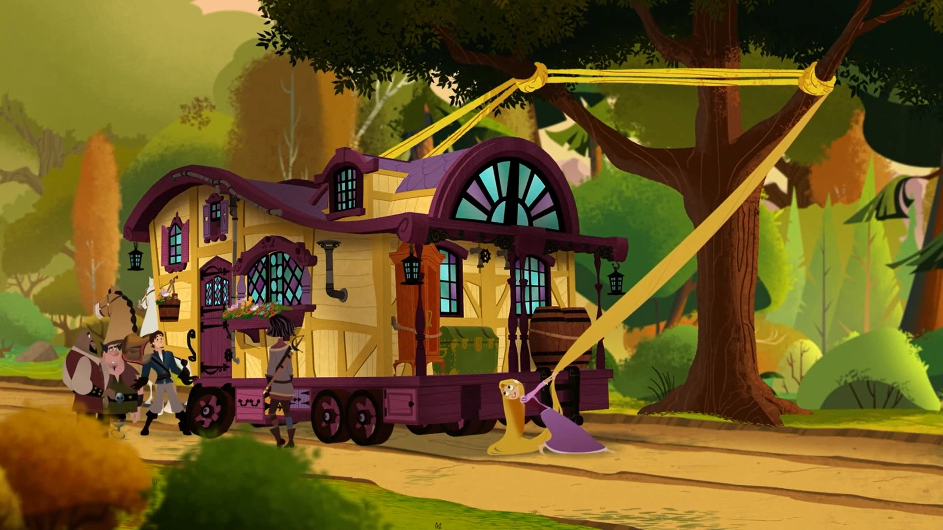 Друзья едут в доме на колёсах по лесу, но вдруг одно из его колёс отваливается. Юджин собирается починить его, но не может поднять повозку, из-за чего Лэнс начинает смеяться над ним. Они начинают спорить о том, кто из них сильнее. К их спору присоединяется Ногокрюк и они решают устроить соревнование. Рапунцель и Кассандра, устав смотреть на данный конфликт, решают отправится поблуждать по лесу.