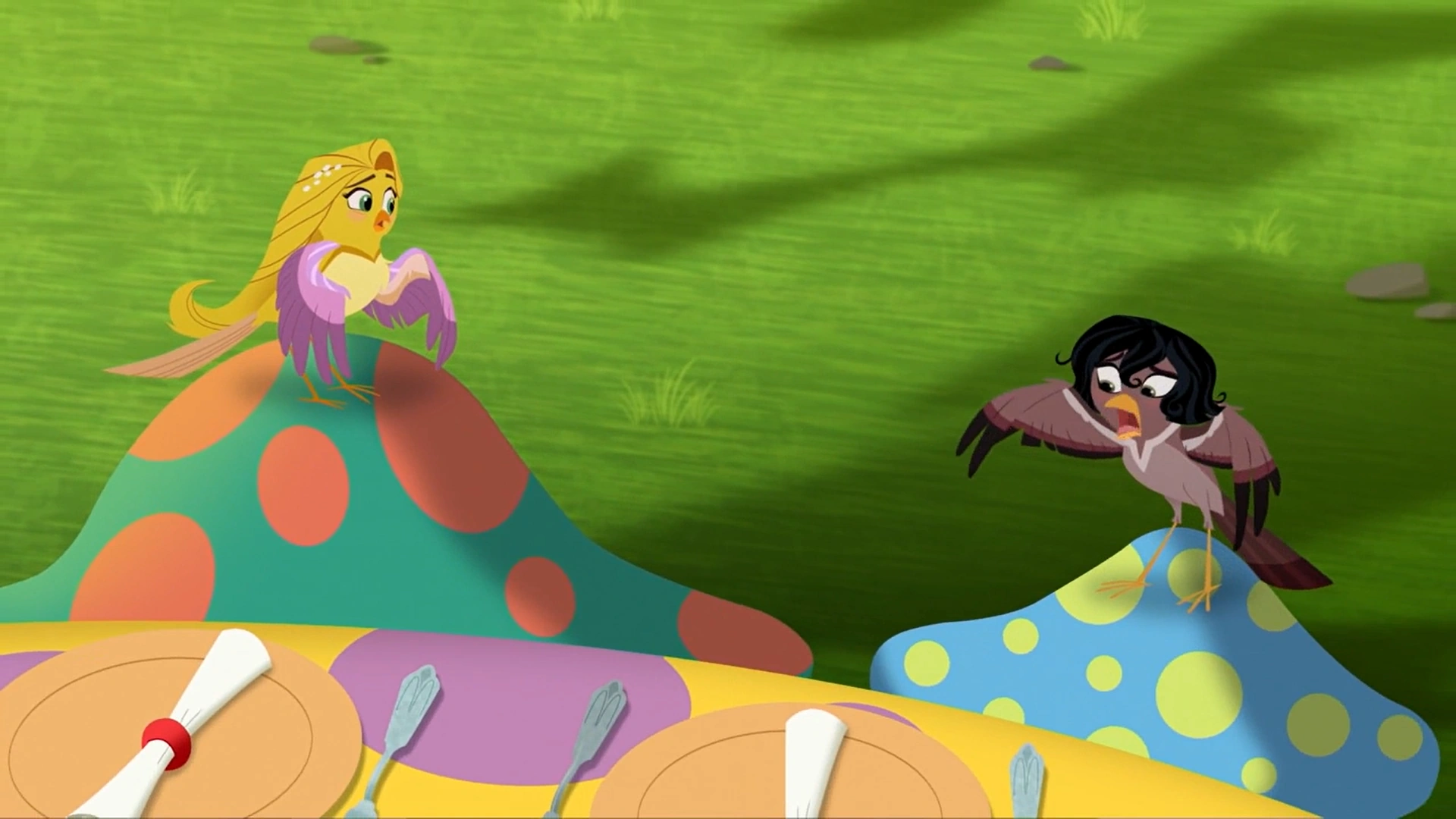 Приключенческий дух Рапунцель ведет друзей в скрытую часть леса, где они все волшебным образом превращаются в птиц.