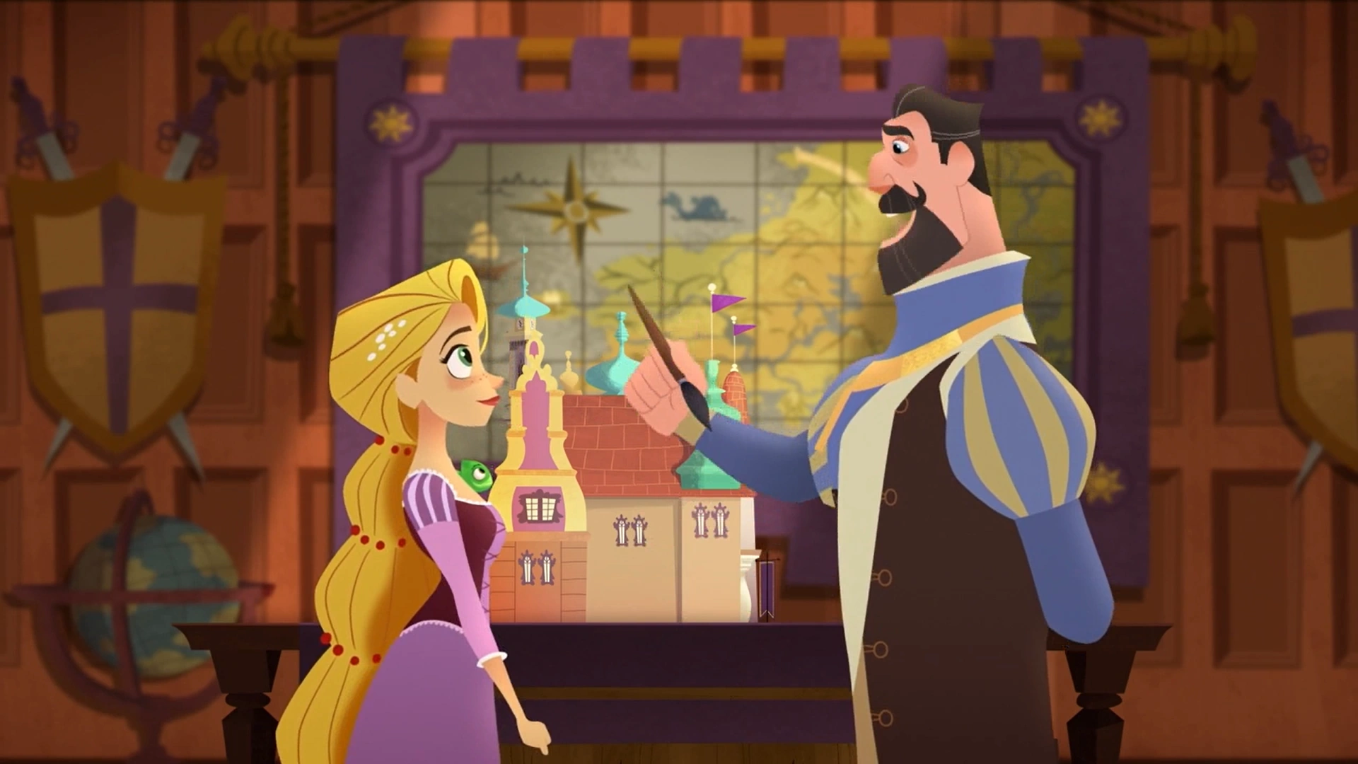 Через несколько дней после тех событий Рапунцель просыпается и находит во дворце слуг, который куда-то уносят хранящиеся в здание произведения искусства. Король Фредерик сообщает ей, что сегодня было завершено строительство галереи Семи Королевств, в которой теперь будут размещены ценные вещи из дворца. Также король сообщает ей, что для завершения галереи желательно наличие в ней полотна, созданного Рапунцель, в связи с чем она отправляется рисовать.